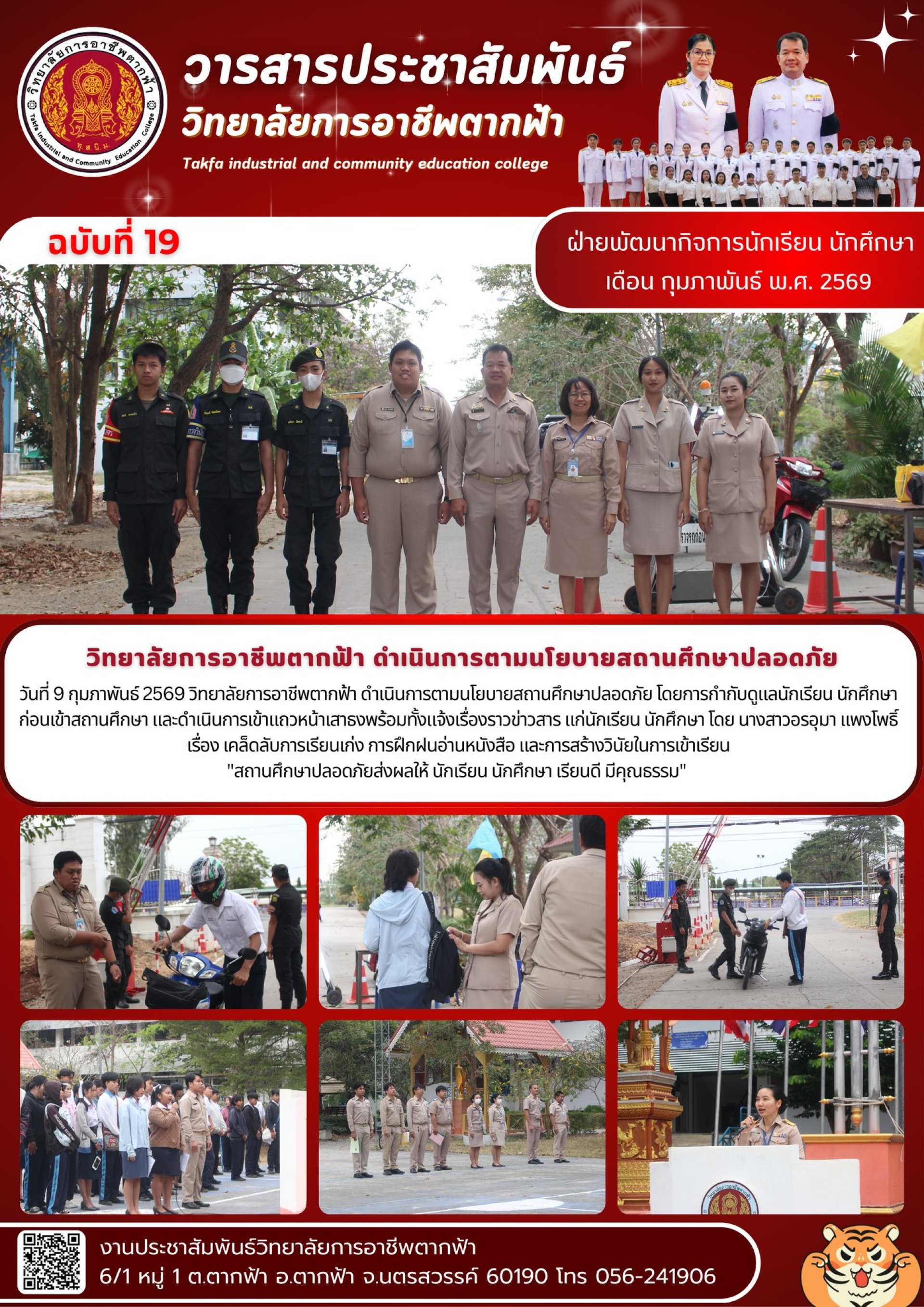 วารสารตากฟ้า ประจำเดือน กุมภาพันธ์ 2569 ฉบับที่ 19 วิทยาลัยการอาชีพตากฟ้า ดำเนินการตามนโยบายสถานศึกษาปลอดภัย