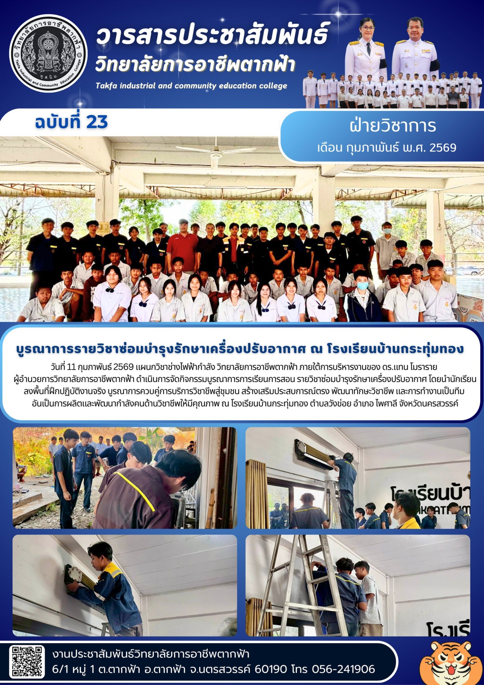 วารสารตากฟ้า ประจำเดือน กุมภาพันธ์ 2569 ฉบับที่ 23 บูรณาการรายวิชาซ่อมบำรุงรักษาเครื่องปรับอากาศ ณ โรงเรียนบ้านกระทุ่มทอง