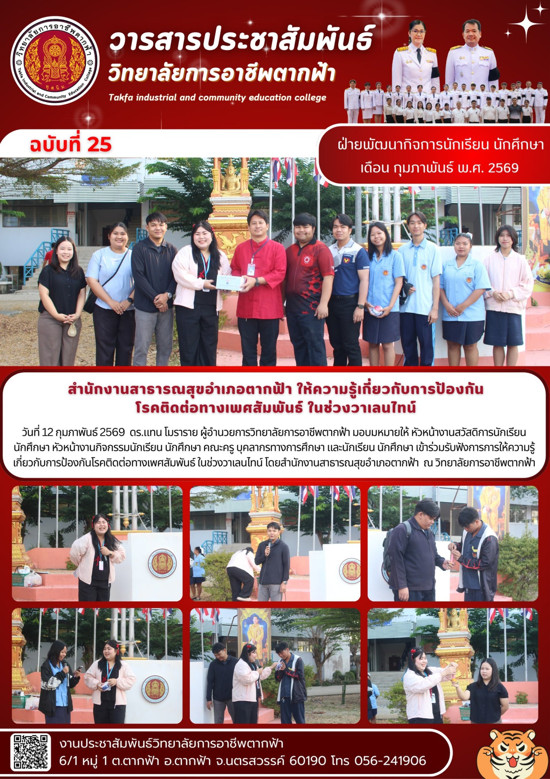 วารสารตากฟ้า ประจำเดือน กุมภาพันธ์ 2569 ฉบับที่ 25 สำนักงานสาธารณสุขอำเภอตากฟ้า ให้ความรู้เกี่ยวกับการป้องกันโรคติดต่อทางเพศสัมพันธ์ ในช่วงวาเลนไทน์