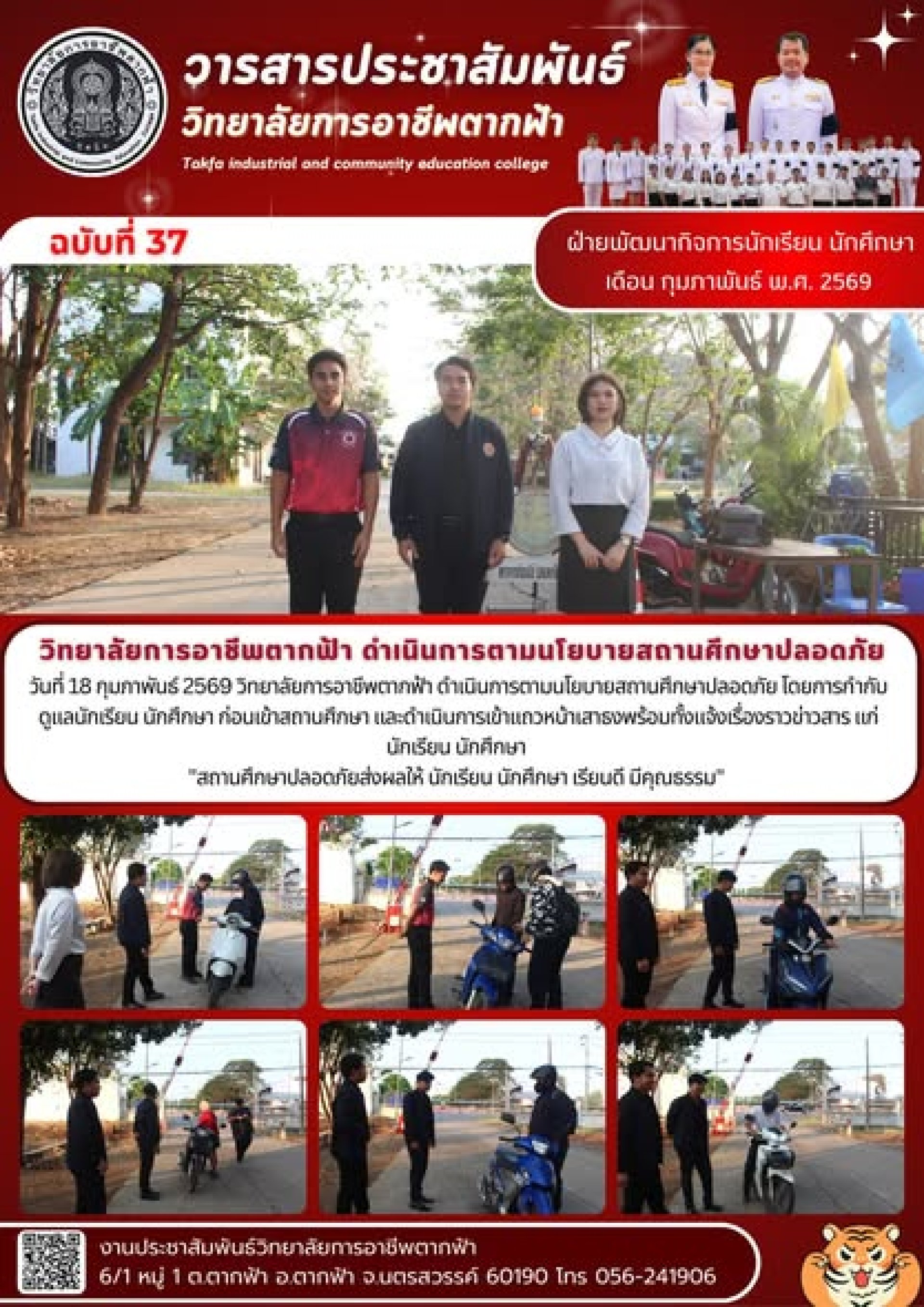 วารสารตากฟ้า ประจำเดือน กุมภาพันธ์ 2569 ฉบับที่ 37 วิทยาลัยการอาชีพตากฟ้า ดำเนินการตามนโยบายสถานศึกษาปลอดภัย