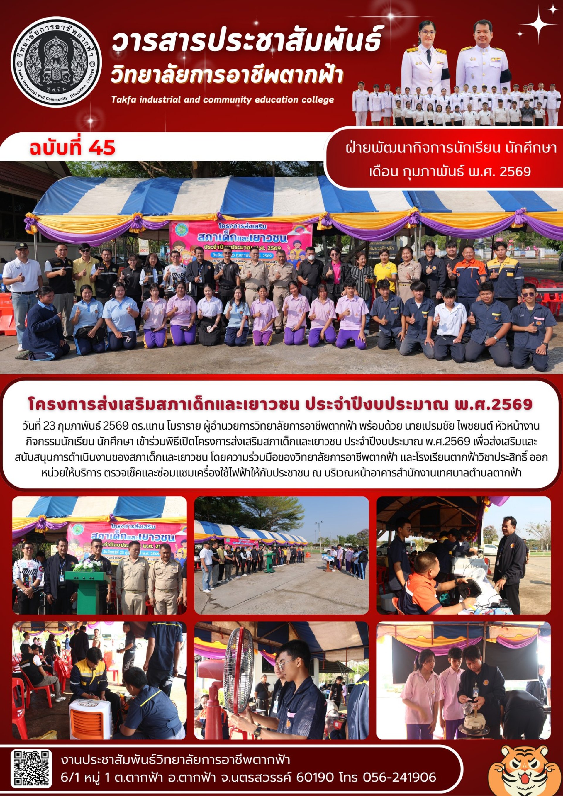วารสารตากฟ้า ประจำเดือน กุมภาพันธ์ 2569 ฉบับที่ 45 โครงการส่งเสริมสภาเด็กและเยาวชน ประจำปีงบประมาณ พ.ศ.2569