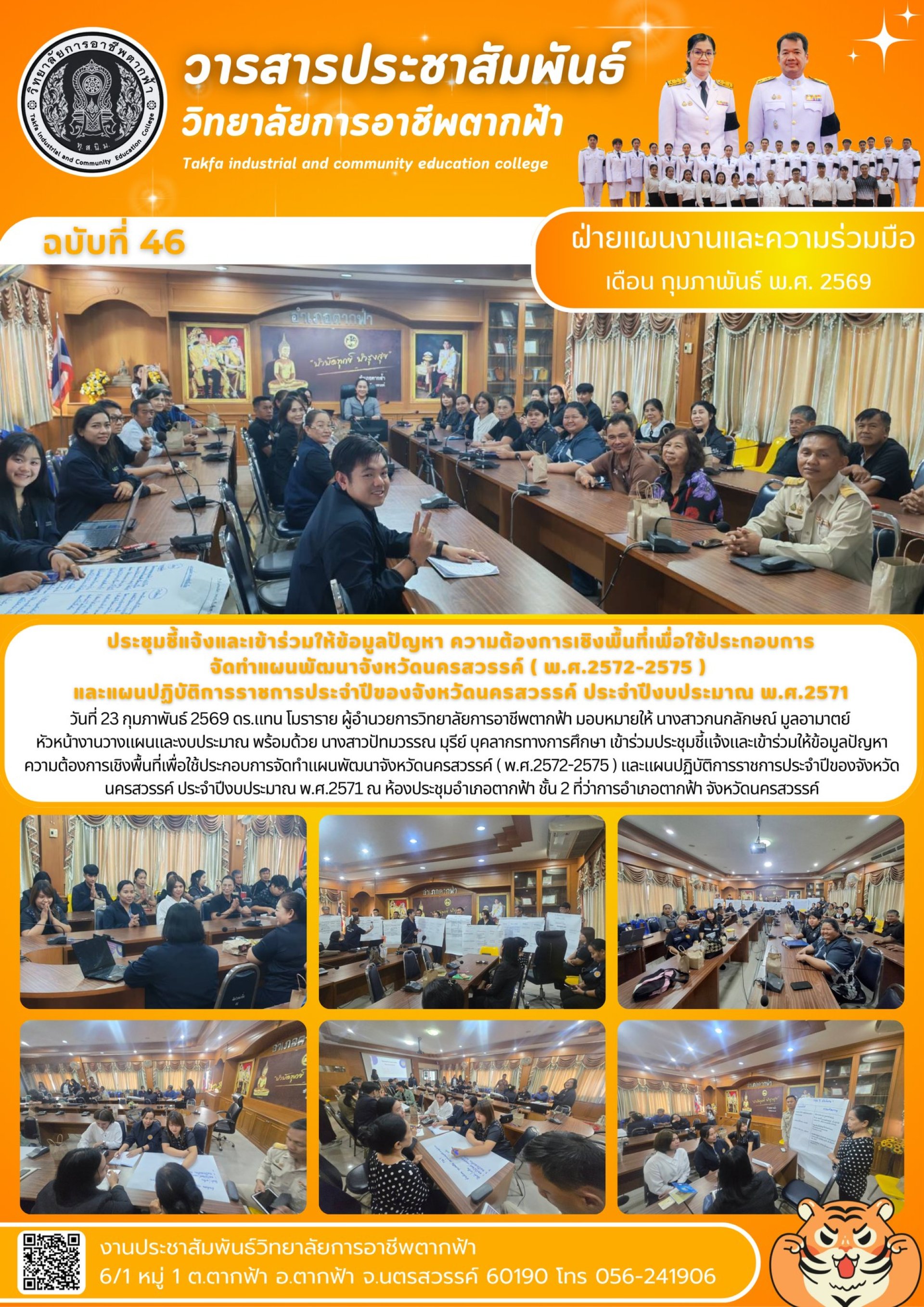 วารสารตากฟ้า ประจำเดือน กุมภาพันธ์ 2569 ฉบับที่ 46 ประชุมชี้แจ้งและเข้าร่วมให้ข้อมูลปัญหา ความต้องการเชิงพื้นที่เพื่อใช้ประกอบการจัดทำแผนพัฒนาจังหวัดนครสวรรค์ ( พ.ศ.2572-2575 ) และแผนปฏิบัติการราชการประจำปีของจังหวัดนครสวรรค์ ประจำปีงบประมาณ พ.ศ.2571