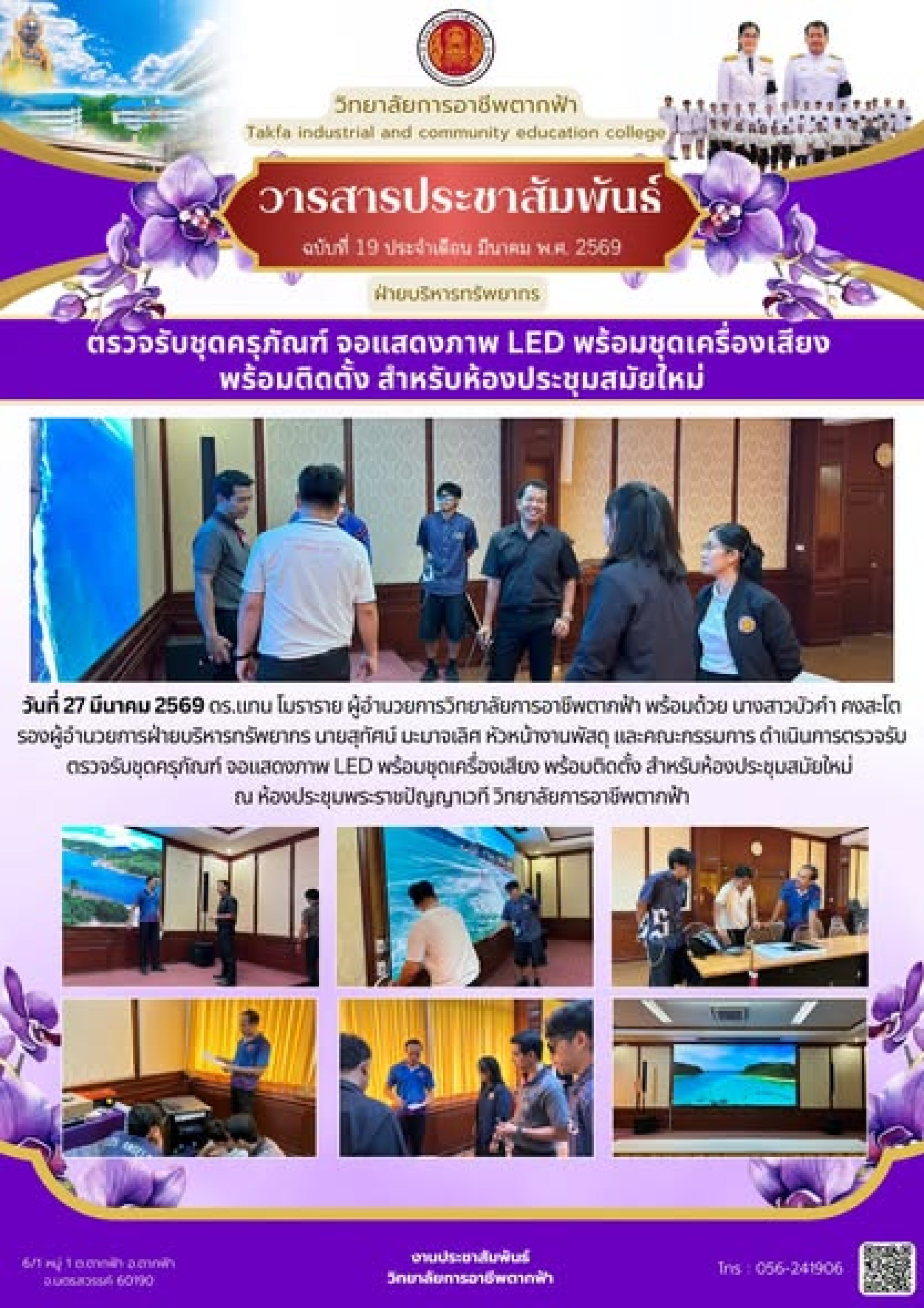 วารสารตากฟ้า ประจำเดือน มีนาคม 2569 ฉบับที่ 19 ตรวจรับชุดครุภัณฑ์ จอแสดงภาพ LED พร้อมชุดเครื่องเสียงพร้อมติดตั้ง สำหรับห้องประชุมสมัยใหม่
