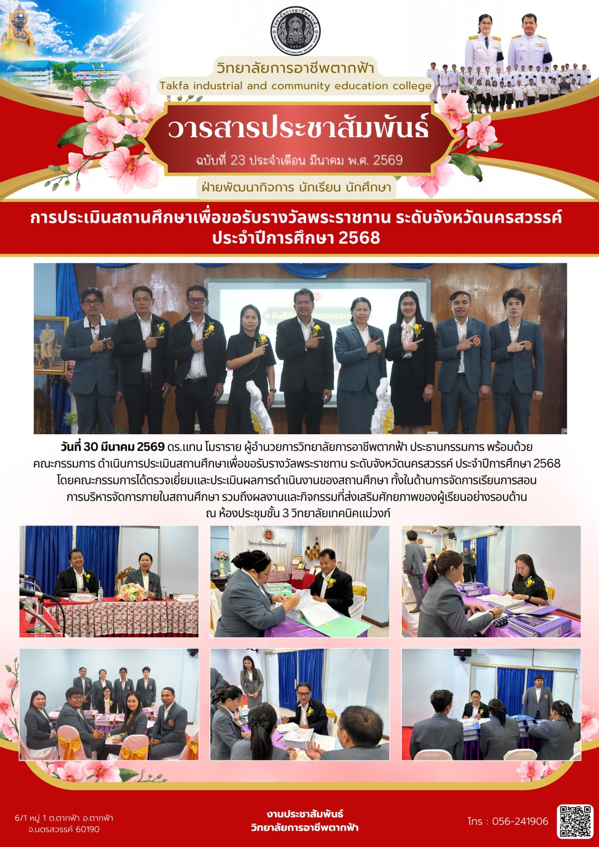 วารสารตากฟ้า ประจำเดือน มีนาคม 2569 ฉบับที่ 23 การประเมินสถานศึกษาเพื่อขอรับรางวัลพระราชทาน ระดับจังหวัดนครสวรรค์ ประจำปีการศึกษา 2568