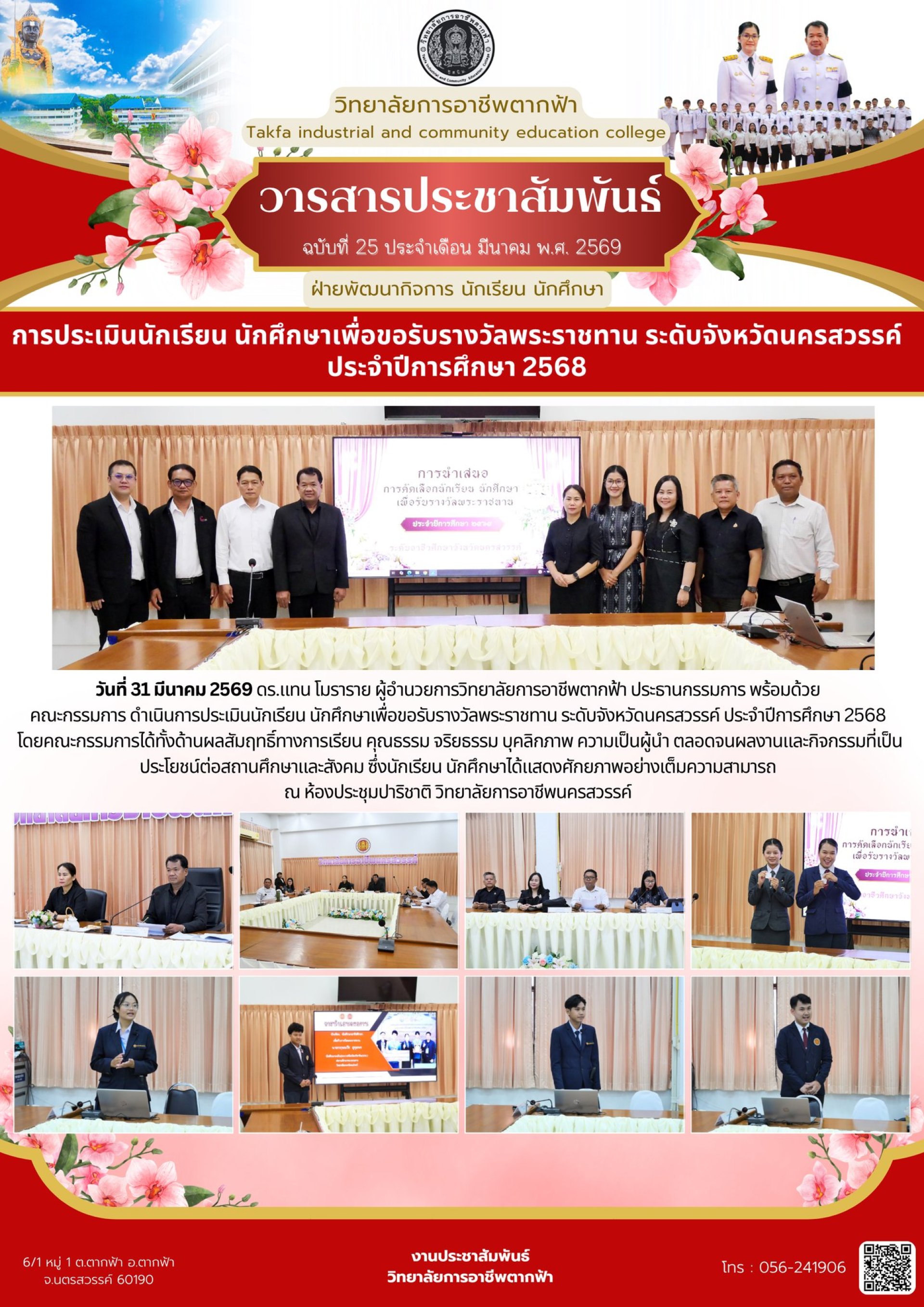 วารสารตากฟ้า ประจำเดือน มีนาคม 2569 ฉบับที่ 25 การประเมินนักเรียน นักศึกษาเพื่อขอรับรางวัลพระราชทาน ระดับจังหวัดนครสวรรค์ ประจำปีการศึกษา 2568