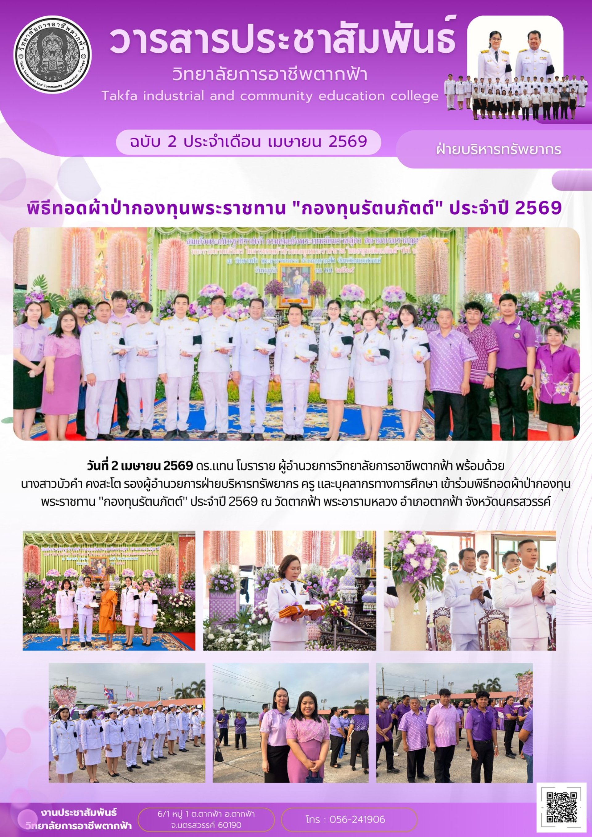 วารสารตากฟ้า ประจำเดือน เมษายน 2569 ฉบับที่ 2 พิธีทอดผ้าป่ากองทุนพระราชทาน "กองทุนรัตนภัตต์" ประจำปี 2569