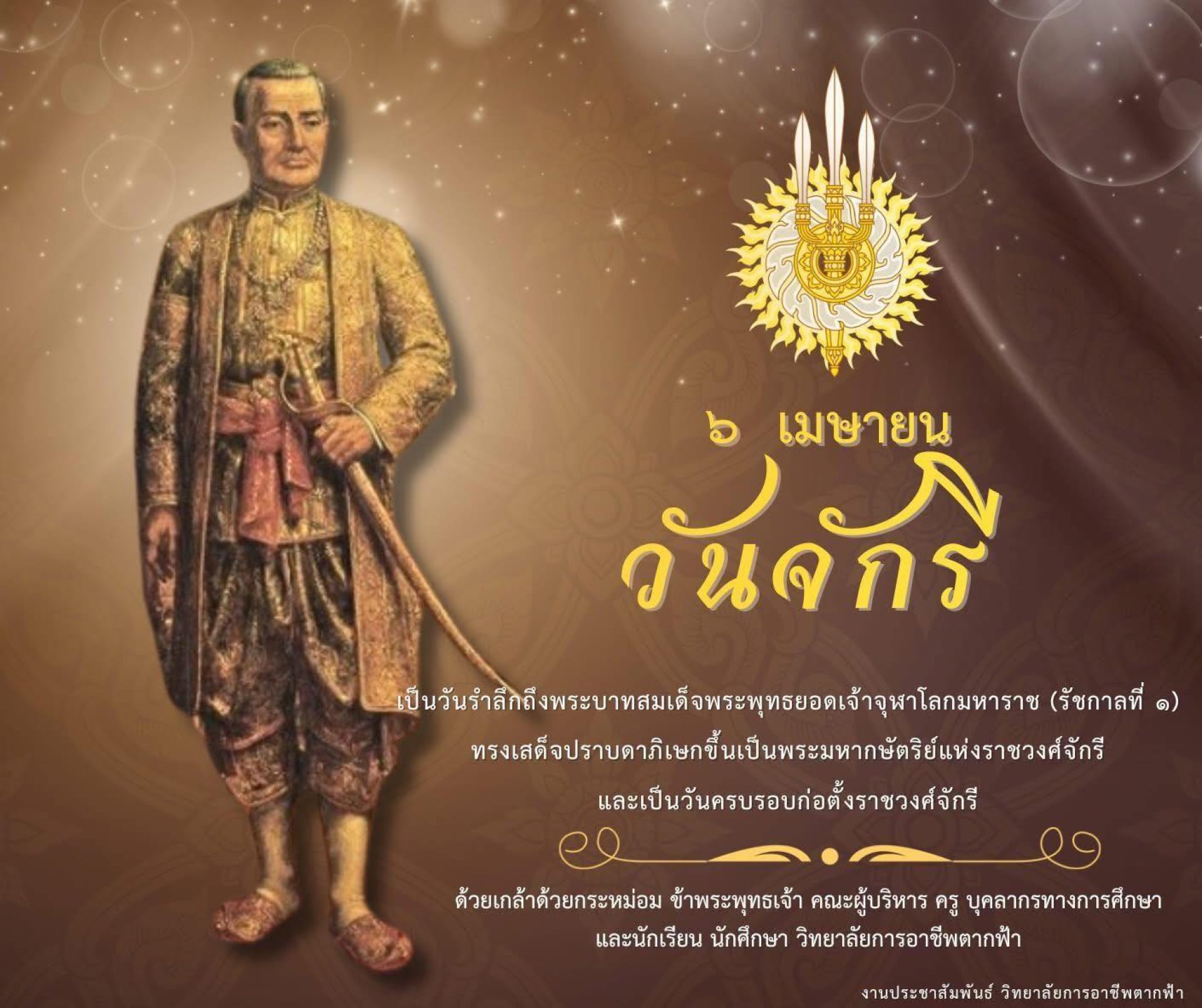 เป็นวันรำลึกถึงพระบามสมเด็จพระพุทธยอดฟ้าจุฬาโลกมหาราช (รัชกาลที่ ๑) ทรงเสด็จปราบดาภิเษกขึ้นเป็นพระมหสกษัตริย์แห่งรสชวงศ์จักรี และเป็นวัครบรอบก่อตั้งราชวงศ์จักรี