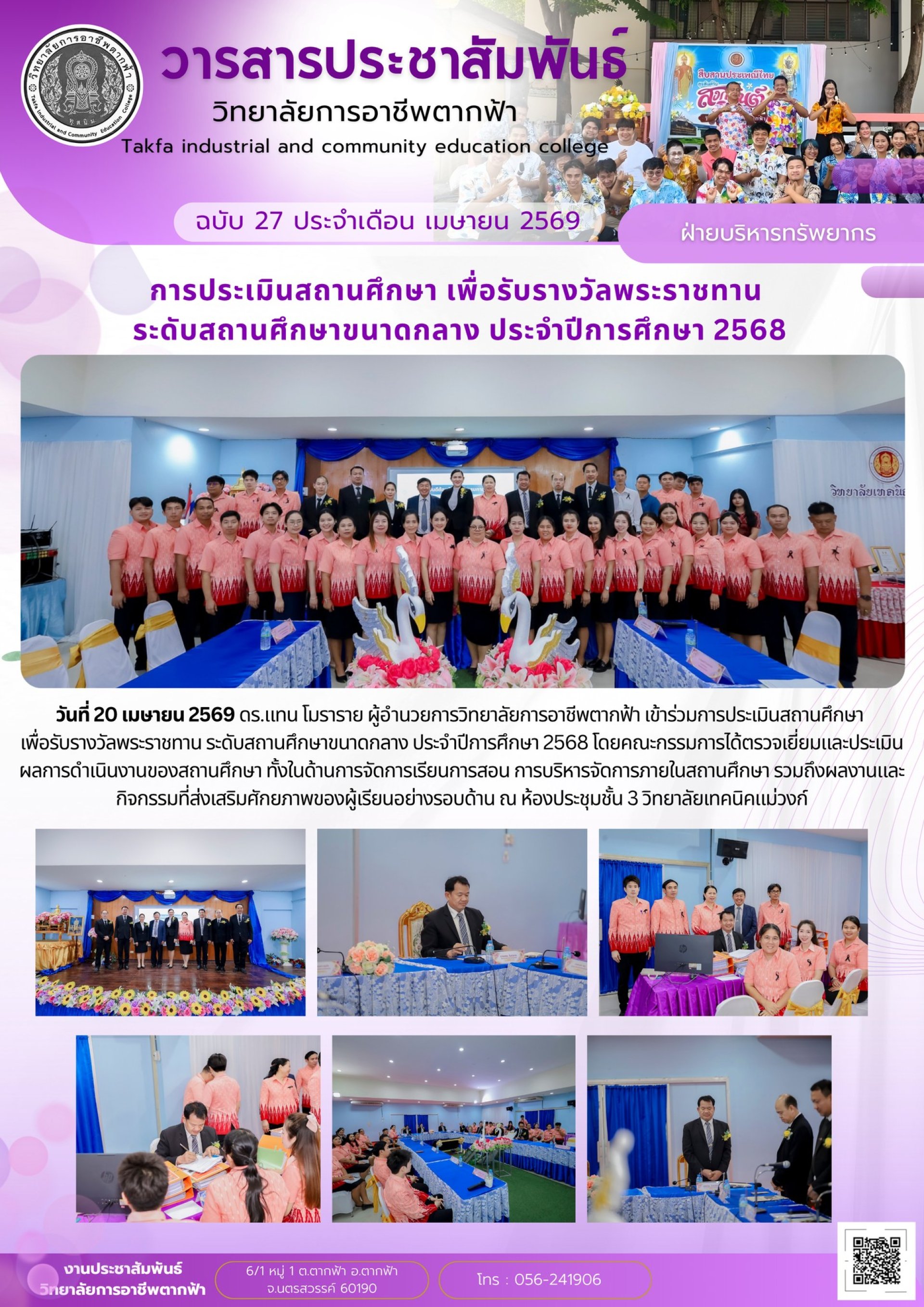 วารสารตากฟ้า ประจำเดือน เมษายน 2569 ฉบับที่ 27 การประเมินสถานศึกษา เพื่อรับรางวัลพระราชทาน ระดับสถานศึกษาขนาดกลาง ประจำปีการศึกษา 2568