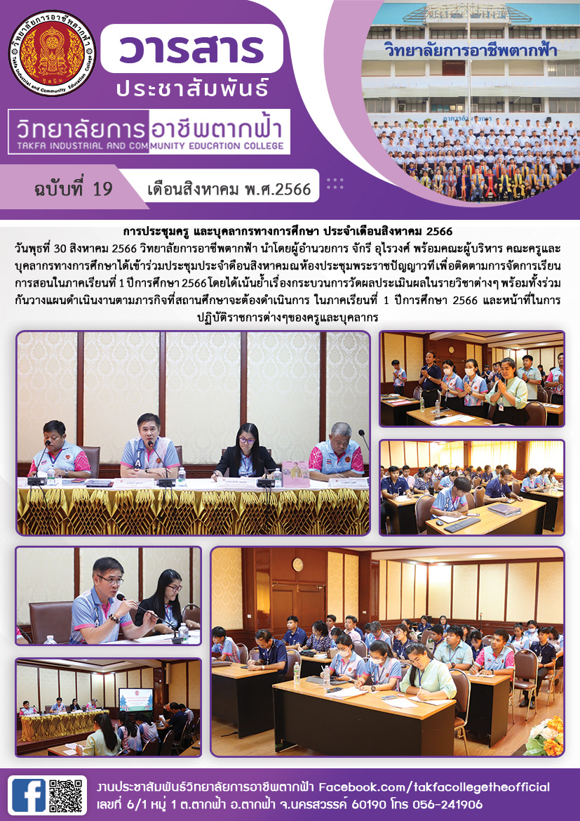 วารสารตากฟ้า ฉบับที่ 19 การประชุมครู และบุคลากรทางการศึกษา ประจำเดือนสิงหาคม 2566