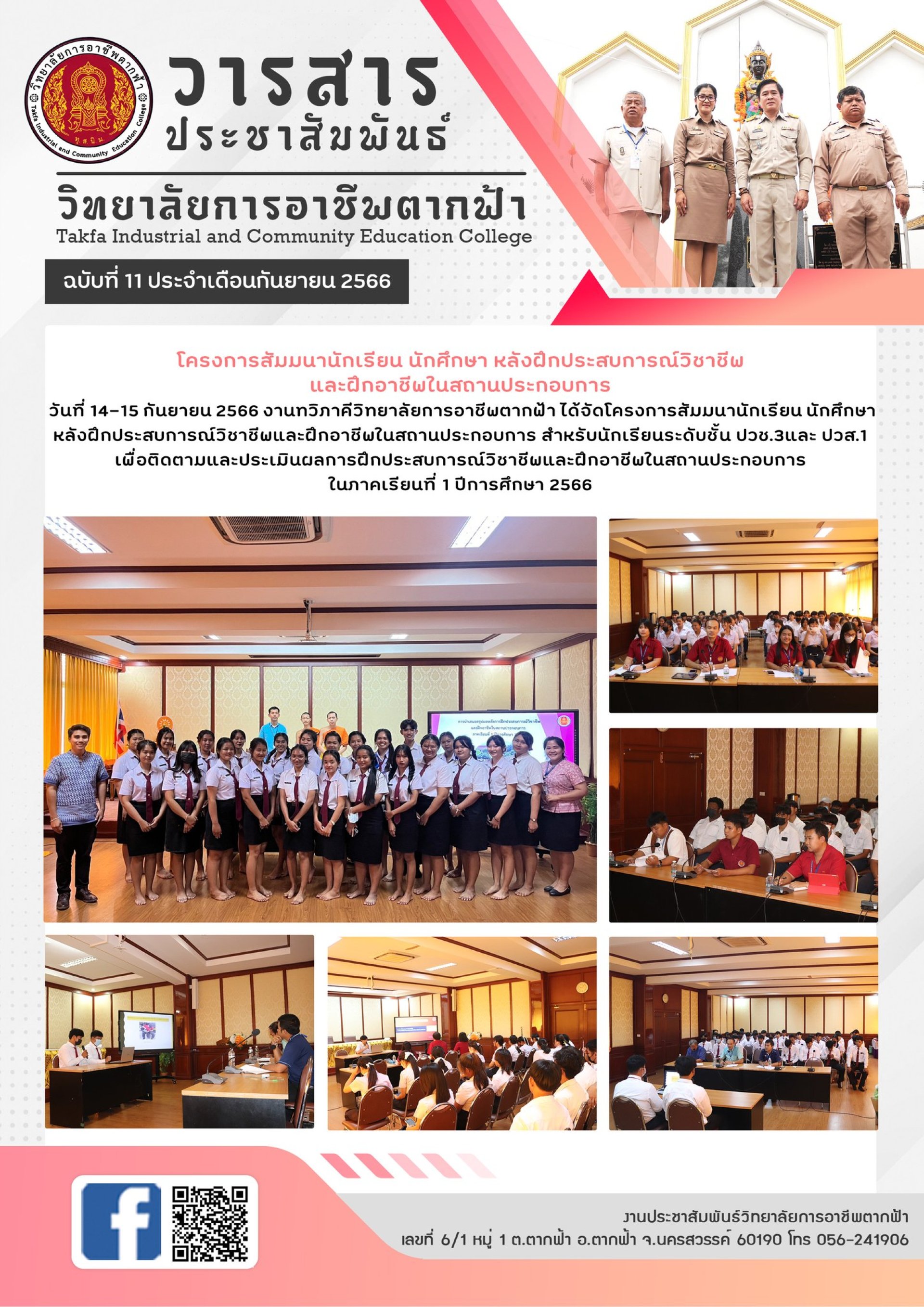 วารสารตากฟ้า ฉบับที่ 11 โครงการสัมมนานักเรียน นักศึกษา หลังฝึกประสบการณ์วิชาชีพและฝึกอาชีพในสถานประกอบการ วันที่ 14-15 กันยายน 2566