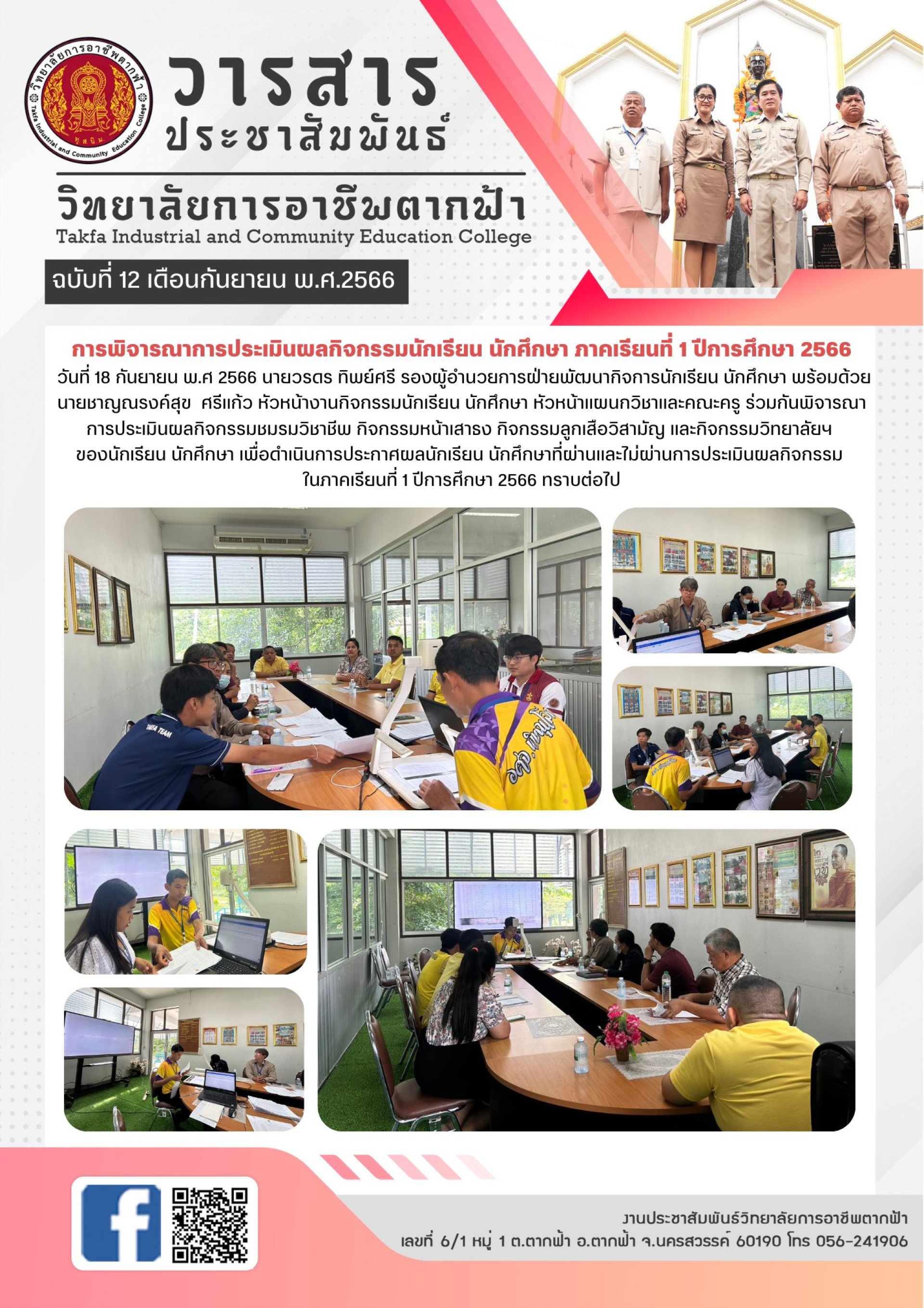 วารสารฉบับที่ 12 การพิจารณาการประเมินผลกิจกรรมนักเรียน นักศึกษา ภาคเรียนที่ 1 ปีการศึกษา 2566 วันที่ 18 กันยายน พ.ศ 2566