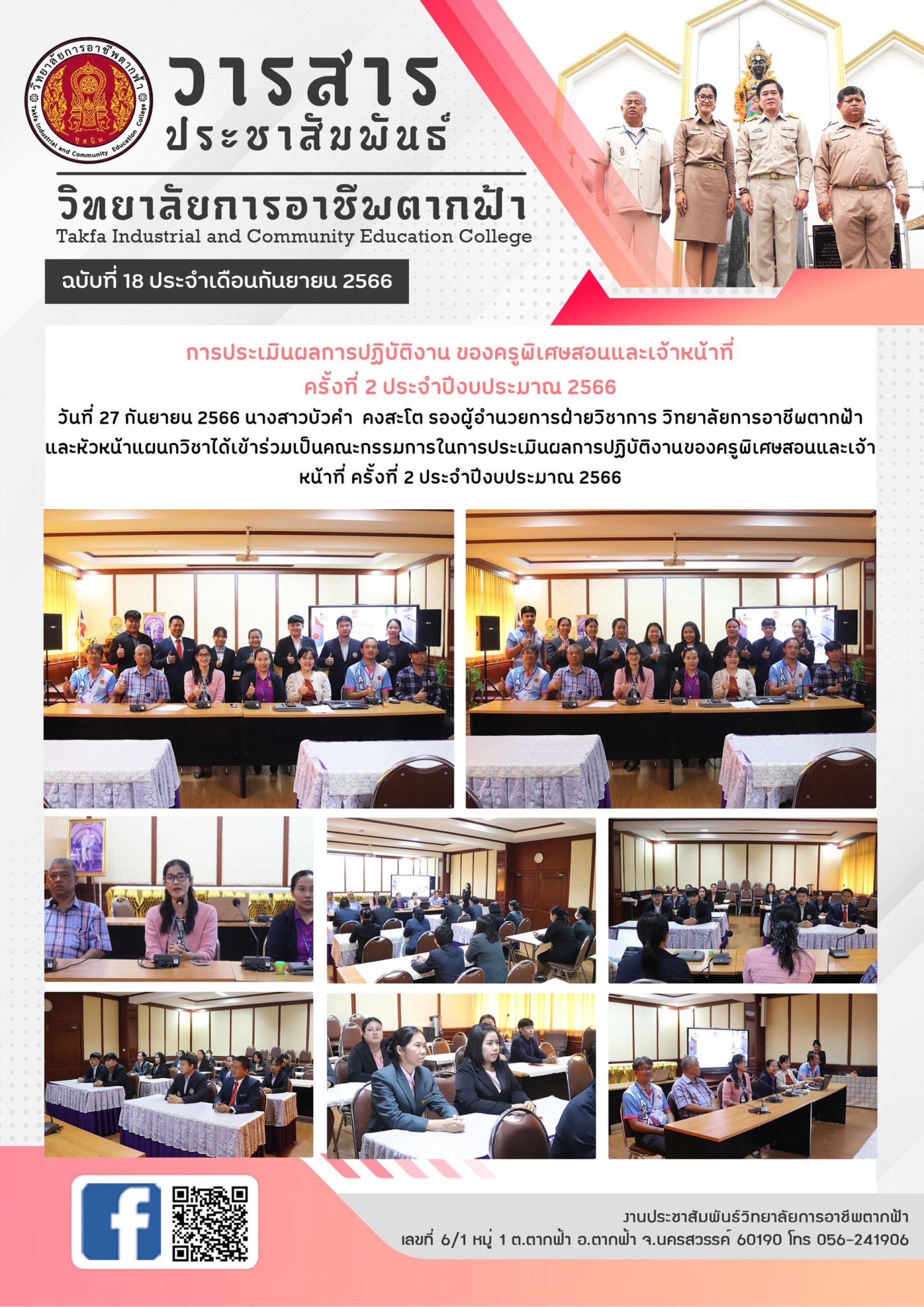 วารสารตากฟ้า ฉบับที่ 18 การประเมินผลการปฏิบัติงาน ของครูพิเศษสอนและเจ้าหน้าที่ ครั้งที่ 2 ประจำปีงบประมาณ 2566