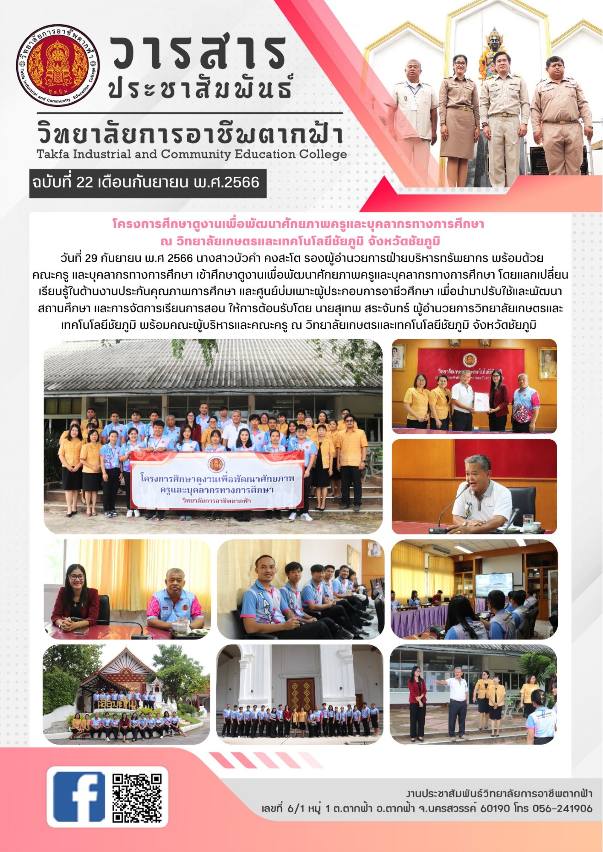 วารสารฉบับที่ 22 โครงการศึกษาดูงานเพื่อพัฒนาศักยภาพครูและบุคลากรทางการศึกษา ณ วิทยาลัยเกษตรและเทคโนโลยีชัยภูมิ จังหวัดชัยภูมิ วันที่ 29 กันยายน พ.ศ 2566
