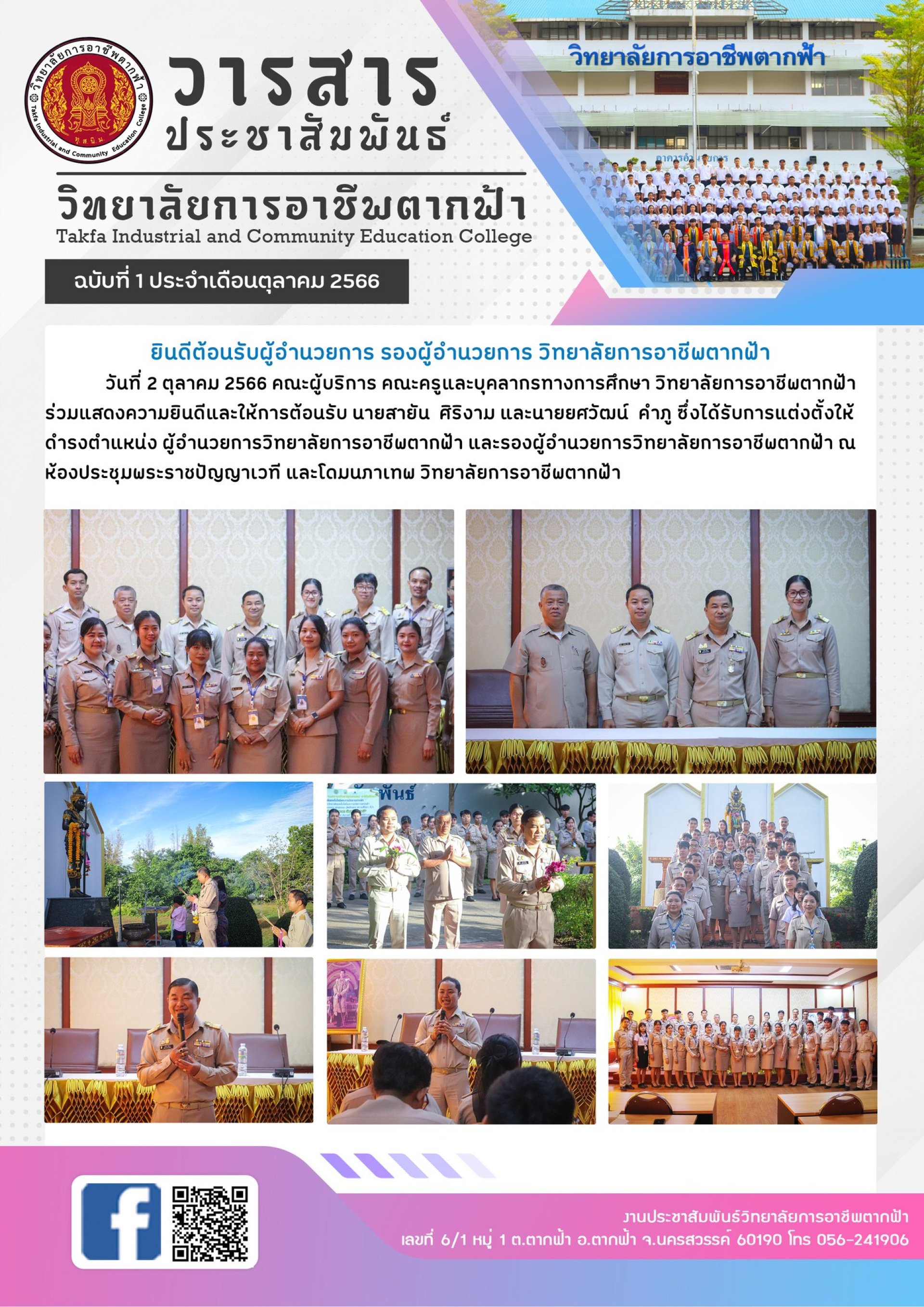 วารสารตากฟ้าประจำเดือนตุลาคม 2566 ฉบับที่ 1 ยินดีต้อนรับผู้อำนวยการ รองผู้อำนวยการ วันที่ 2 ตุลาคม 2566