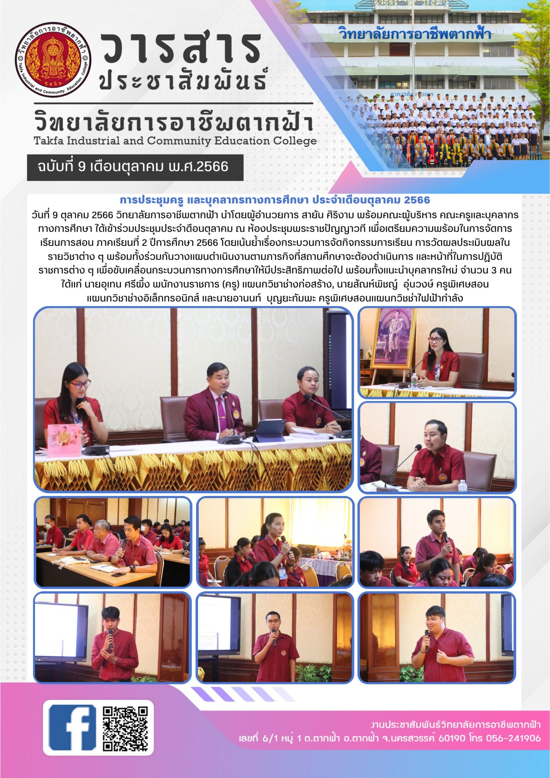 วารสารตากฟ้าประจำเดือนตุลาคม 2566 ฉบับที่ 9 การประชุมครู และบุคลากรทางการศึกษา ประจำเดือนตุลาคม 2566 วันที่ 9 ตุลาคม 2566