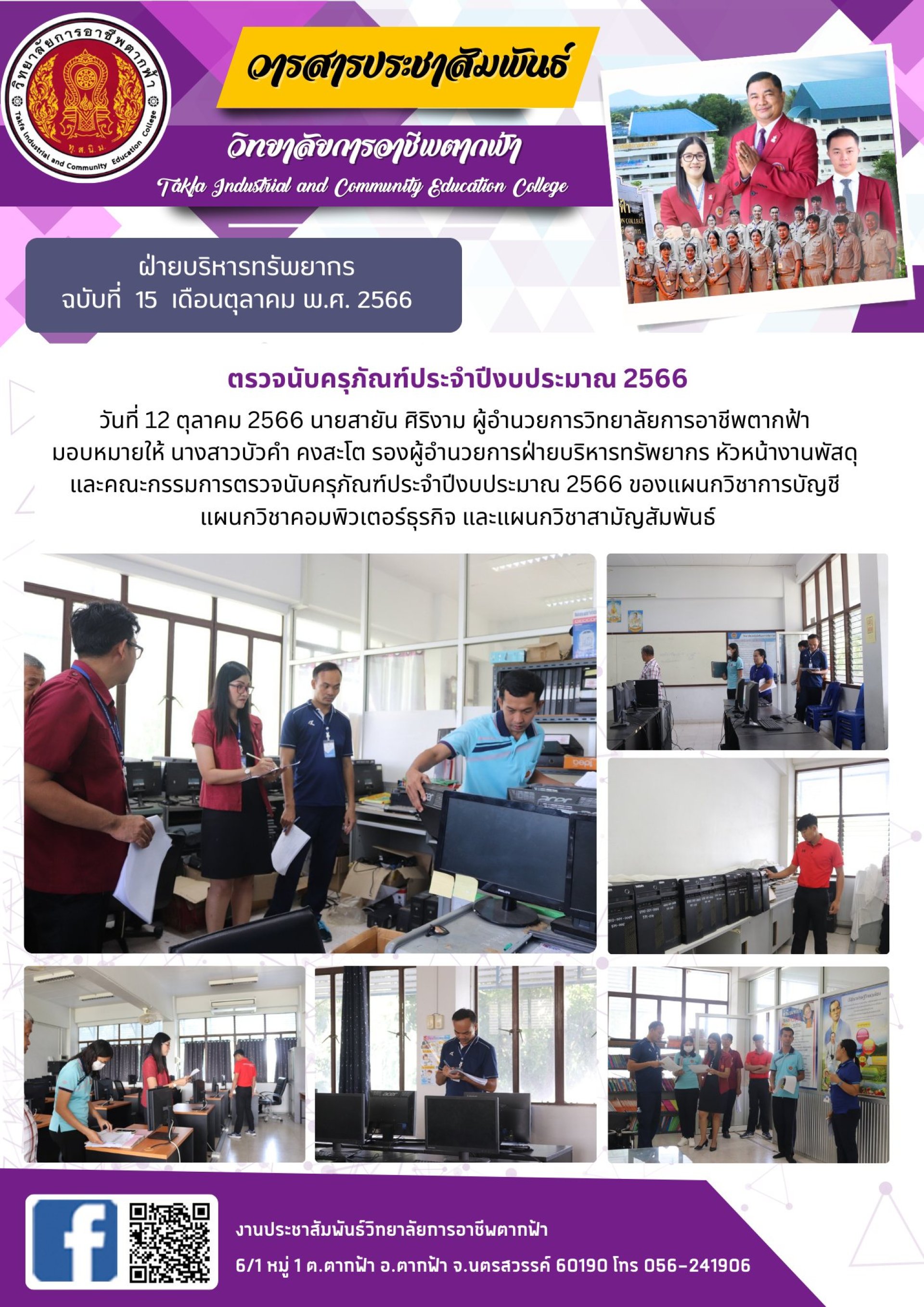 วารสารตากฟ้าประจำเดือนตุลาคม 2566 ฉบับที่ 15 ตรวจนับครุภัณฑ์ประจำปีงบประมาณ 2566 วันที่ 12 ตุลาคม 2566